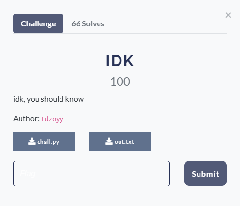 Diberikan 2 file, chall.py dan out.txt, berikut ini isinya :